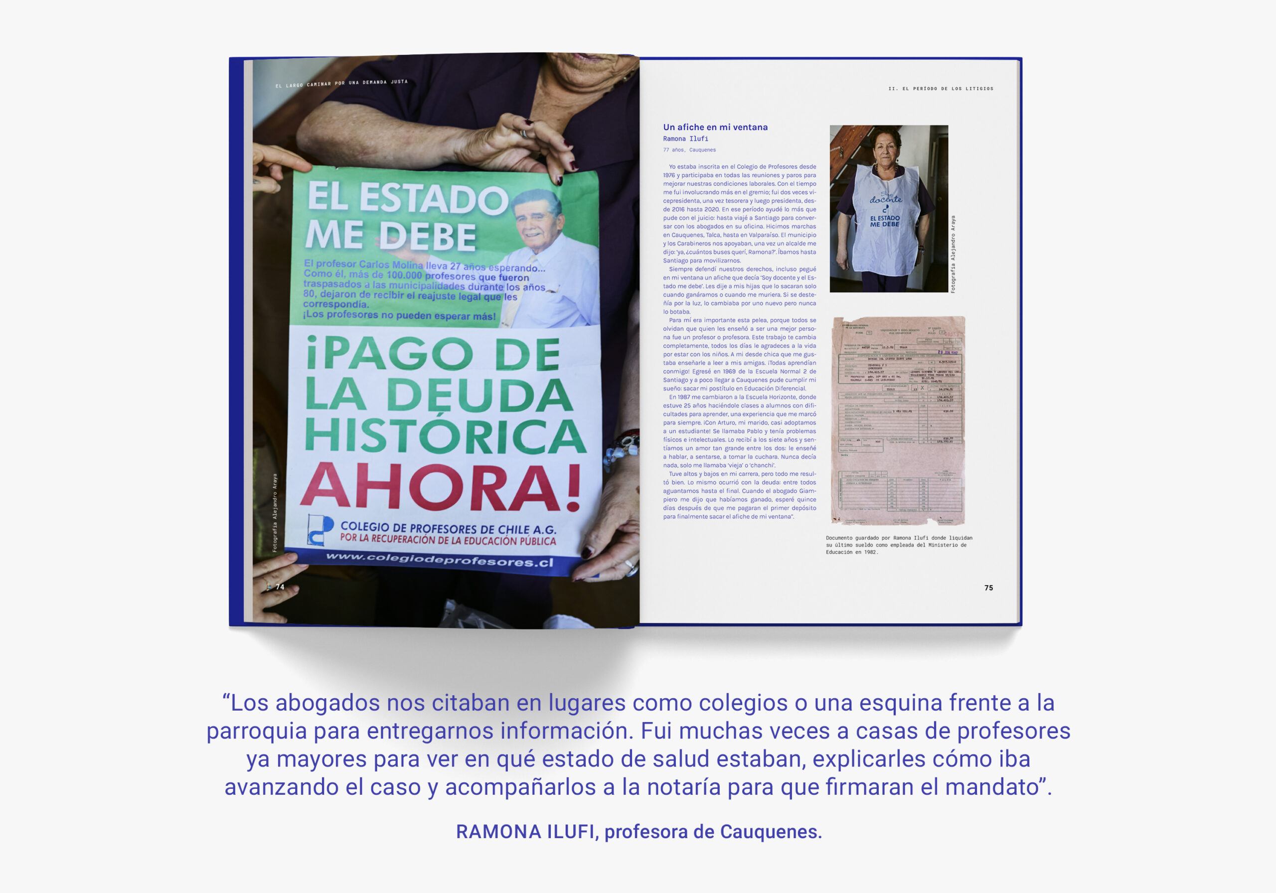 Junto al equipo legal y a los profesores que protagonizaron la demanda, Memoria Creativa desarrolló la investigación, fue a terreno a entrevistar y retratar a los profesores, y recopiló cientos de documentos legales y de fotografías de sus álbumes personales para dejar testimonio de una vocación a toda prueba y desplegar los detalles inéditos, los escollos y los hitos más trepidantes de esta hazaña hasta lograr justicia.